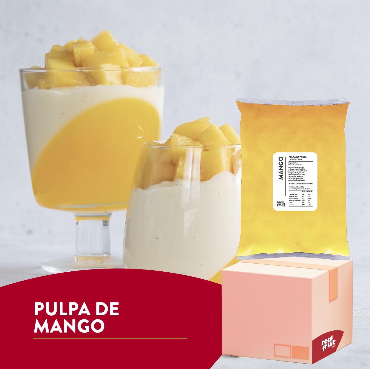 Pulpa de Mango con azúcar. Fruta 100% Natural ideal para Tartaletas, Kuchen, Postres, Snacks y Repostería y jugos, Formato: caja de 10×1 kg.