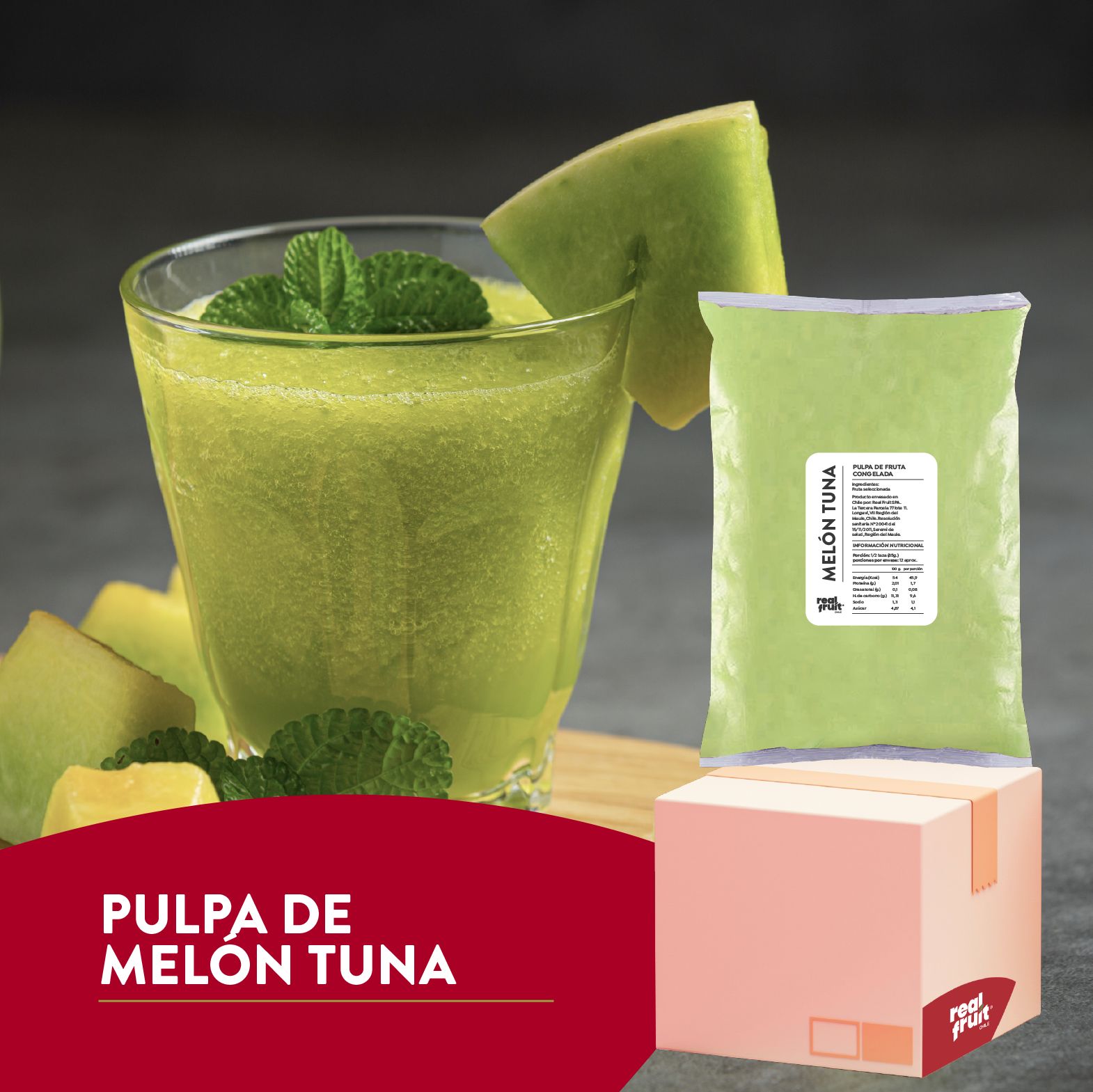 Pulpa de Melón Tuna con Azúcar añadida, Fruta 100% Natural Ideal para Jugos, Tartaletas, Kuchen, Postres, Snacks y Repostería y jugos, Formato: caja de 10×1 kg.